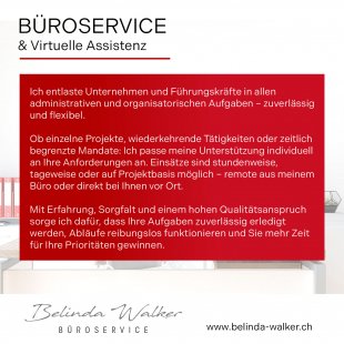 Mein Service ist darauf ausgerichtet, den Büroalltag zu erleichtern und die Bedürfnisse effizient und unkompliziert abzudecken.